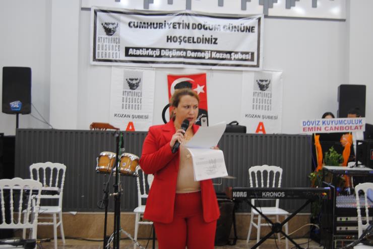 CHP Kozan İlçe Başkanı Erkan Karaoğlu ve İYİ Parti Kozan İlçe Başkanı Hasan Kaymaz da yaptıkları konuşmalarda Cumhuriyetin kazanımlarına sahip çıkacaklarını dile getirirken, Kozan Belediye Başkan Yardımcısı Alev Ataş, “Cumhuriyet kadını olmaktan gurur duyuyorum,” sözleriyle alkış aldı.