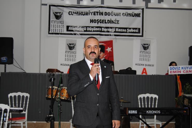 Programda konuşan ADD Kozan Şube Başkanı Nezih Karavelioğlu, Cumhuriyet’in temelinde eşitlik, özgürlük ve çağdaşlık ilkelerinin yattığını vurguladı. Karavelioğlu, “Türkiye Cumhuriyeti, farklı kimlikleri kucaklayan bir anlayışla kurulmuştur. 1924 Anayasası’nda belirtildiği gibi, bu ülkeye vatandaşlık bağıyla bağlı olan herkes Türk’tür. Biz, Atatürk’ün ‘Ne mutlu Türküm diyene’ sözünü yürekten benimseyen insanlarız,” dedi.