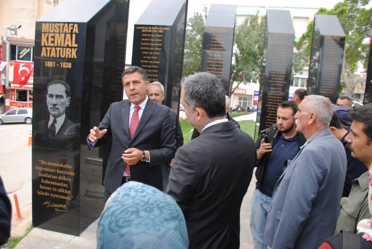 Kurdele kesiminin ardından dualar eşliğinde gerçekleşen örtü açma töreni, katılımcıların yoğun ilgisiyle karşılandı. Belediye Başkanı Mustafa Atlı, Kaymakam Bahattin Alp Arslanköylü’ye anıtın detayları hakkında bilgi verdi.