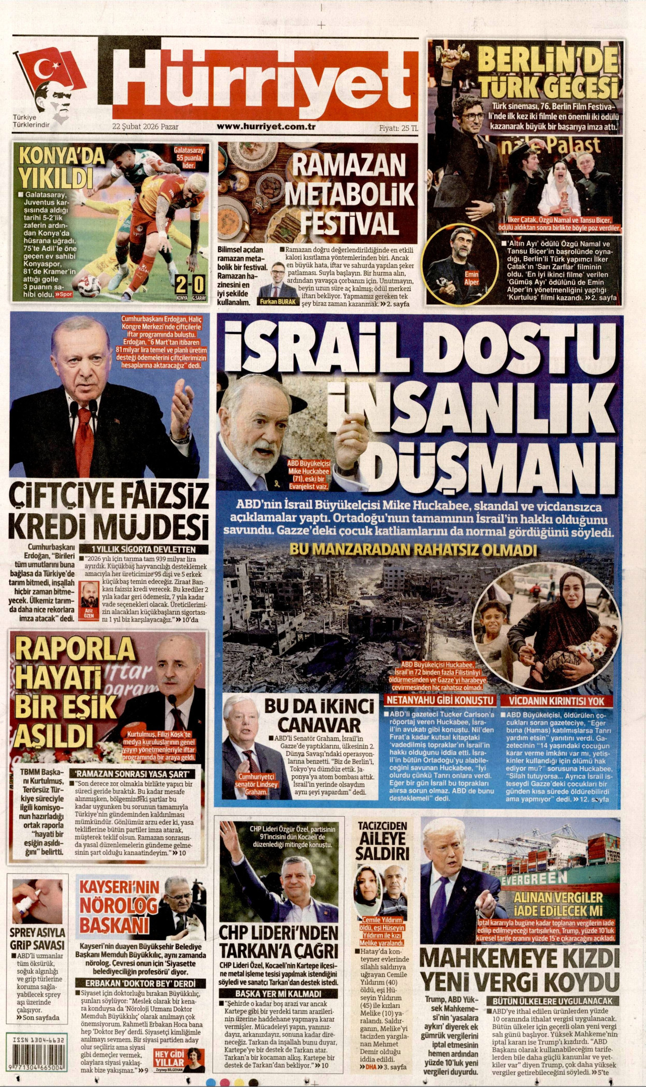 22 Şubat 2026, Pazar Günü Manşeti