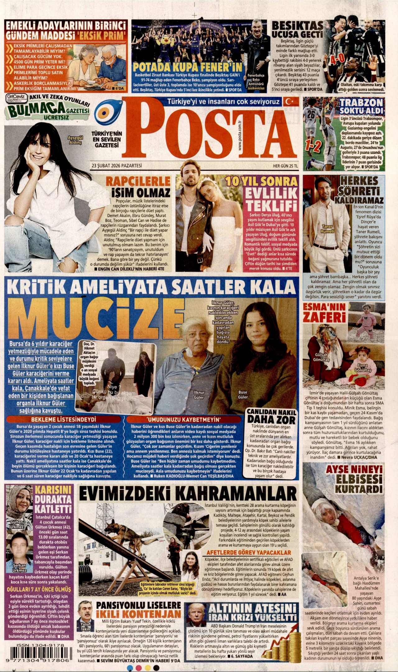 POSTA Gazetesi 23 Şubat 2026, Pazartesi Günü Manşeti
